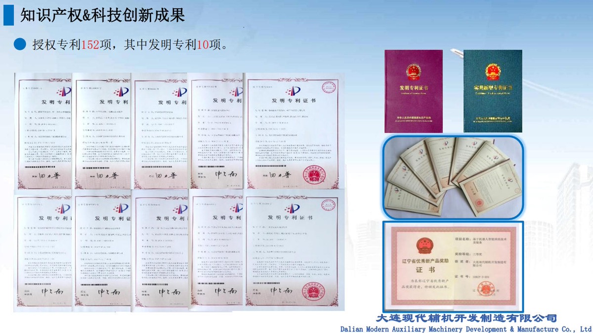 大连现代辅机开发制造有限公司自2001年成立以来,便将知识产权视为企业发展的核心资产,精心呵护并大力培育。截至目前,公司已坐拥自主知识产权152项,涵盖10项发明专利、4 项外观设计专利以及 138 项实用新型专利,构建起了牢固的技术壁垒。每一项成果都凝聚着研发团队的智慧结晶。这些专利成果不仅提升了产品性能与生产效率,更在市场竞争中赋予大连现代辅机独特优势,助力其成为上汽大众、上汽通用、沈阳宝马等几十家国内外知名企业信赖的设备供应商。凭借技术与知识产权的双重支撑,屡屡脱颖而出,持续巩固市场地位,也为通用设备制造业的技术创新与发展注入源源不断的活力。