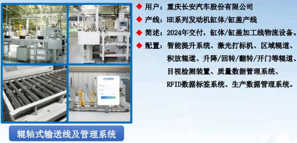 1 根据产线需求,配置智能提升系统、激光打标机、区域辊道、积放辊道、升降/回转/翻转/开门等辊道、目视检测装置、质量数据管理系统、RFID数据标签系统、生产数据管理系统。